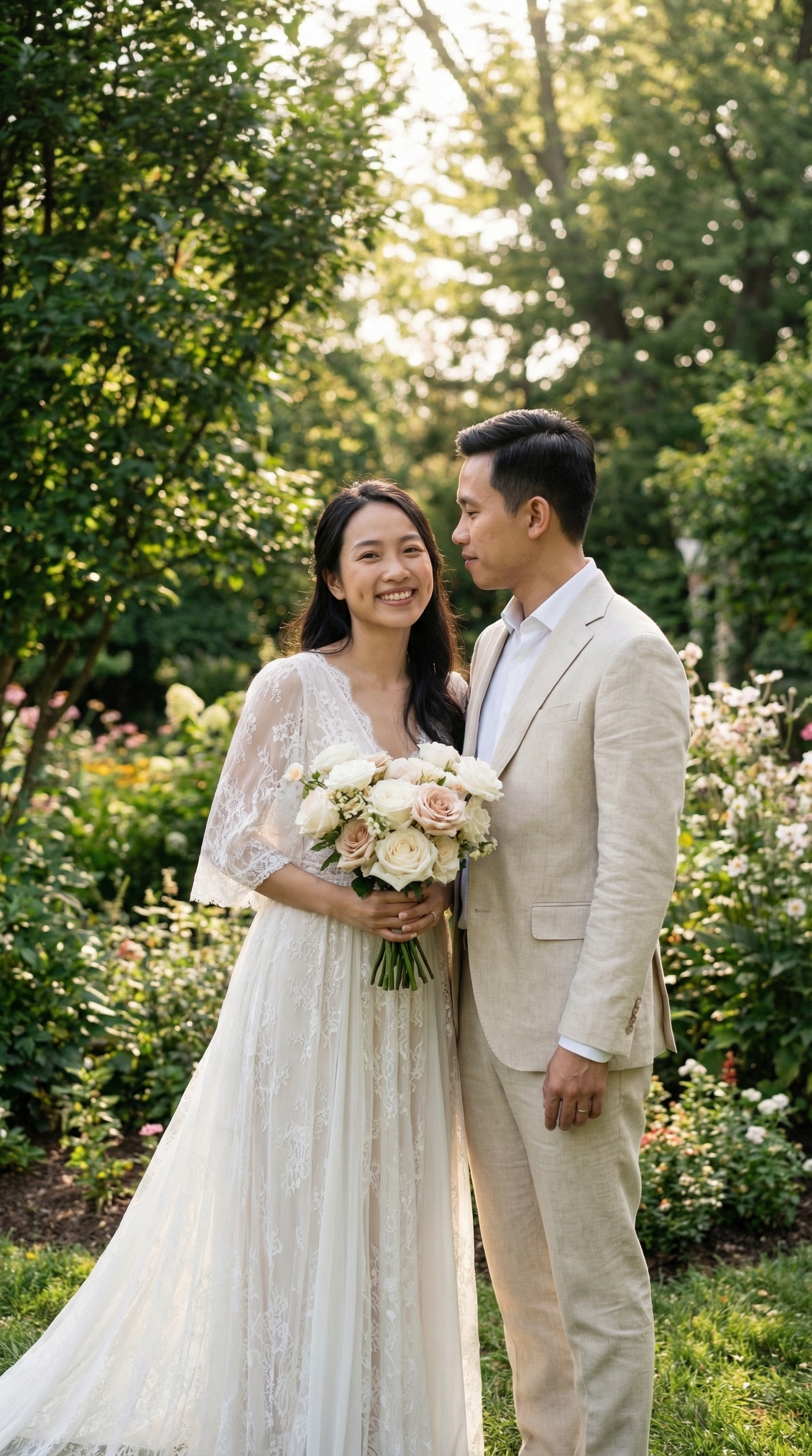 “Hai chúng tôi gặp nhau tại một triển lãm hoa anh đào ở Đà Lạt, nơi mà cả hai cùng mê đắm trước vẻ đẹp của những cánh hoa rơi. Một nụ cười xa lạ đã trở thành khởi đầu của tất cả.”